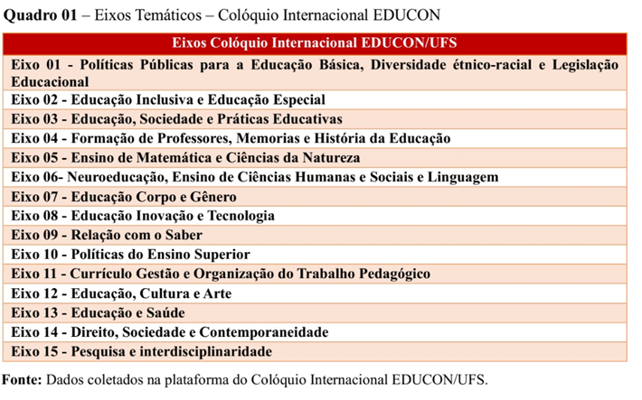 Fonte: Dados coletados na plataforma do Colóquio Internacional EDUCON/UFS.