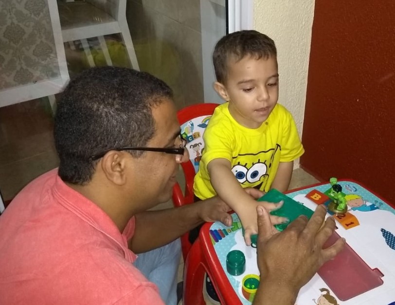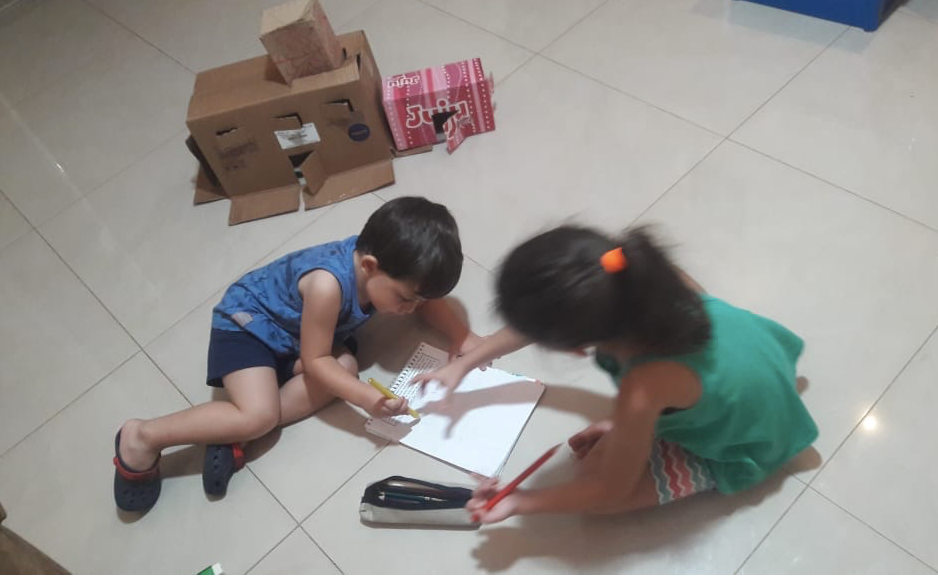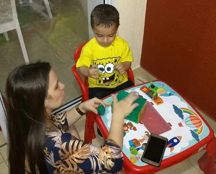 Numa noite muito linda, mamãe, papai, Yasmin e Arthur se reuniram na sala de casa e sentados ao chão ouviram a mamãe contar a bonita história “O homem que amava caixas”. Durante a leitura o Arthur ficou muito atento e participativo. O que ele mais gostou foi do castelo de caixas. É sempre engraçado vê-lo conversando. É sempre um bom momento poder reunir a família para interagir nas atividades escolares. Bem motivante!”.
