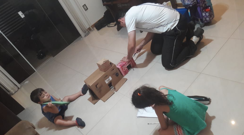 Além do relato, a família fez um desenho, brincaram de castelo e construíram um carro juntos. Como podemos ver nas imagens abaixo:
