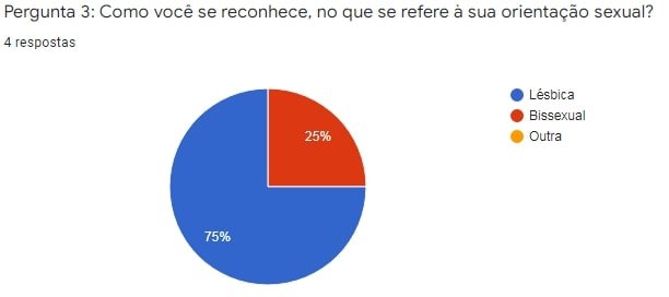 A seção abaixo refere-se aos resultados e a discussão desse artigo. Os nomes utilizados são fictícios e foram selecionadas 04 (quatro) estudantes, dentre as quais, três se identificaram como lésbicas e uma se identificou como bissexual, conforme gráfico abaixo: