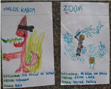 Representa dois exemplos de personagens elaborados pelas crianças.