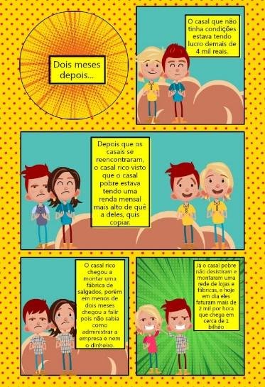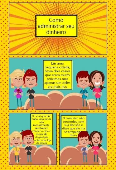 iii) elaboração de uma HQ utilizando um aplicativo de criação de histórias em quadrinhos (ex. COMIC), a partir do capítulo: capítulo três- Lição 2: Para que alfabetização financeira? -do livro “PAI RICO, PAI POBRE” de Robert Kiyosaki e Sharon Lechter, (2000).